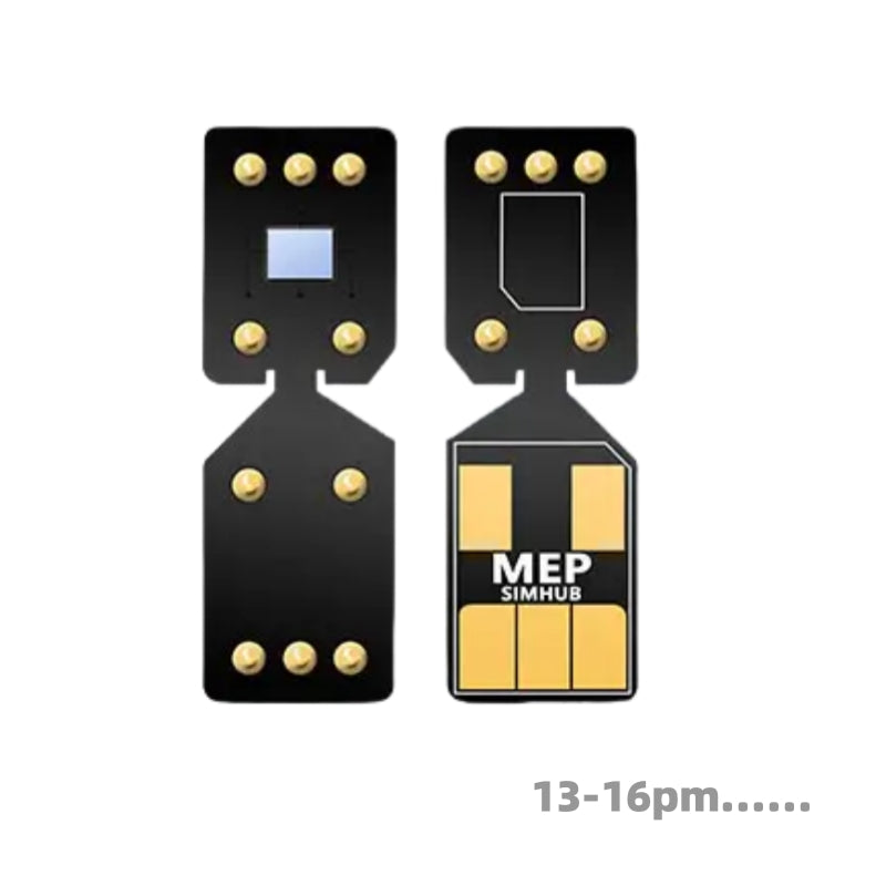 Este chip de modo MEP se ha desarrollado exclusivamente para los modelos de iPhone 13, 14, 15 y 16 equipados con doble ranura para tarjetas SIM. Tenga en cuenta que no es compatible con las series iPhone 7, 8, X, 11 ni 12.